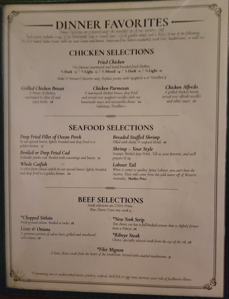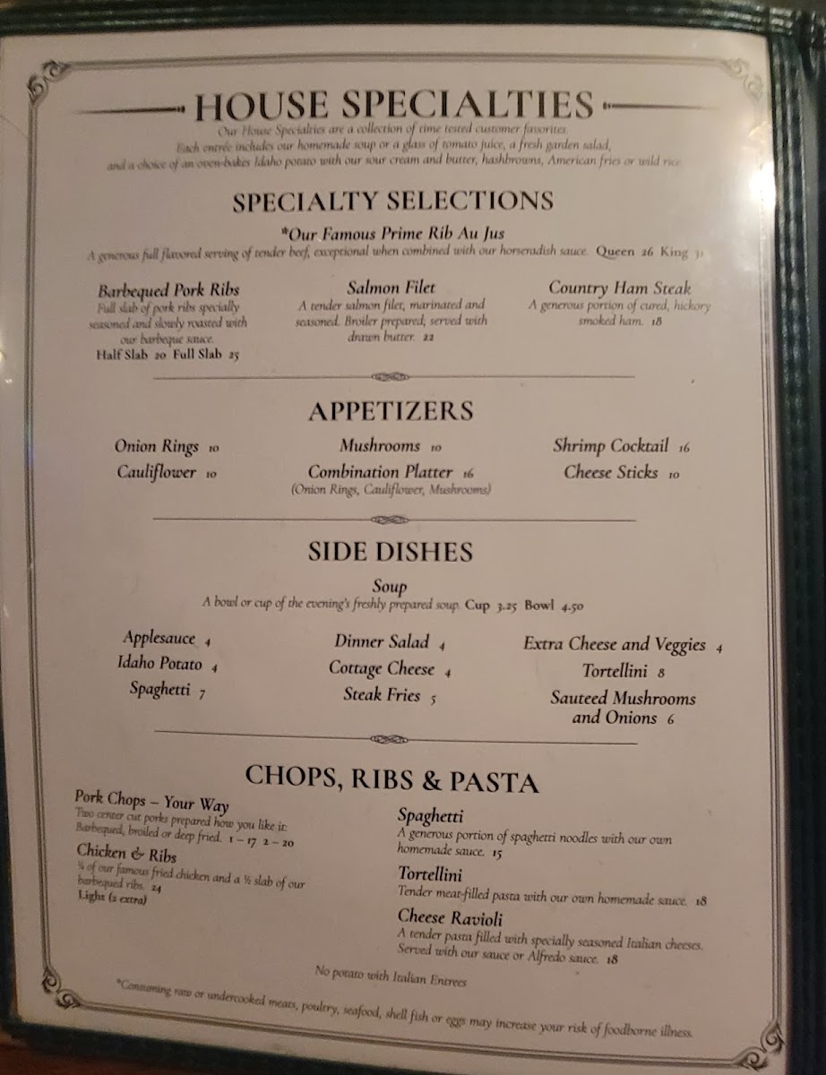 Start your meal with a selection of appetizers like delicious crudités and a rich cheese spread. As for main courses, patrons rave about the prime rib and ribeye steaks, perfectly cooked and generously portioned, accompanied by classic sides. Some reviews highlight the chicken Alfredo and veggie soup, underscoring the establishment's commitment to variety.